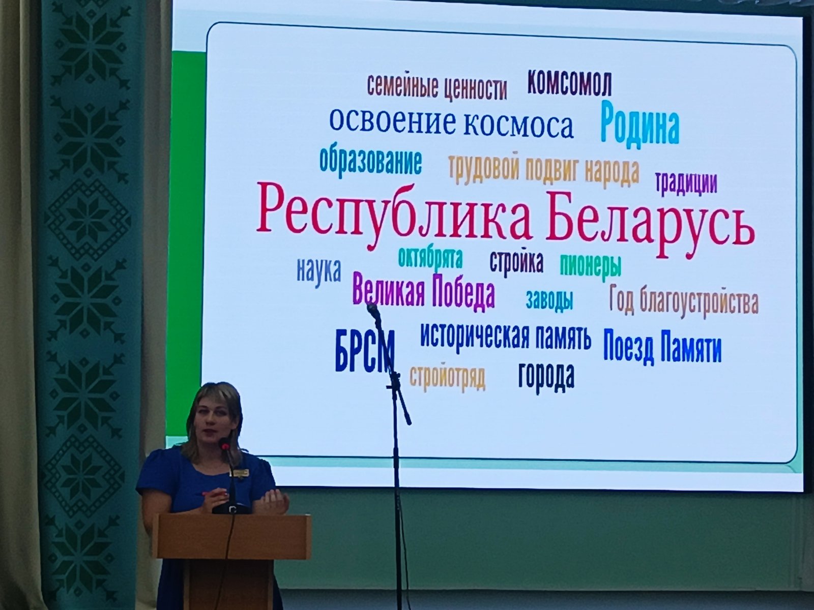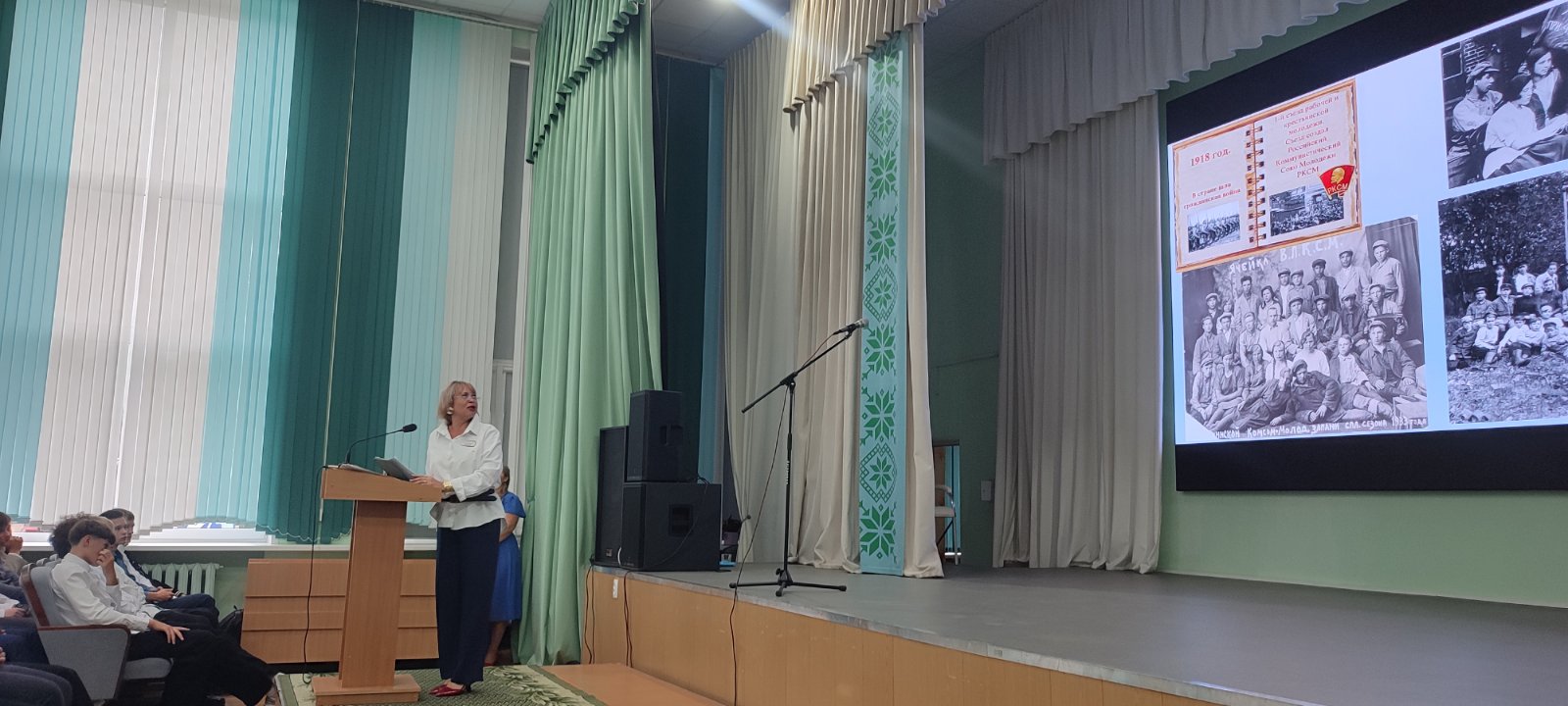 - педагог-организатор учреждения образования «Борисовский государственный колледж» Шевкунова Наталья Фёдоровна рассказала об идеалах, ценностях советских комсомольцев, а также подчеркнула актуальность деятельности современной молодежи в рядах ОО «БРСМ». Ребятам был продемонстрирован видеоролик «Молодежный Контент. БРСМ: сила в команде».