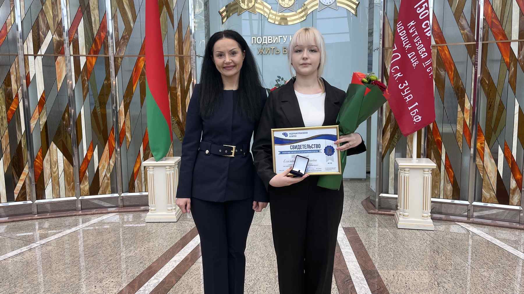 18.11.2025Профсоюзы особое внимание уделяют работе с молодежью, поддерживают ее инициативы и желание активно участвовать в общественной жизни, а также развиваться в профессиональной сфере и приносить пользу обществу. В 2025 году уже в десятый раз Национальный профцентр присудил стипендии перспективной молодежи. Стипендии учащимся вручила ФИЛИМОНОВА ТАТЬЯНА ВАСИЛЬЕВНА, заместитель Председателя Федерации профсоюзов Беларуси. Среди стипендиатов - учащаяся 32н группы отделения педагогических профессий Борисовского государственного колледжа Тупицына Елизавета вошла в топ 15 учащихся со всей Республики, среди студентов вузов, учащихся ссузов и профессионально-технических учреждений образования.