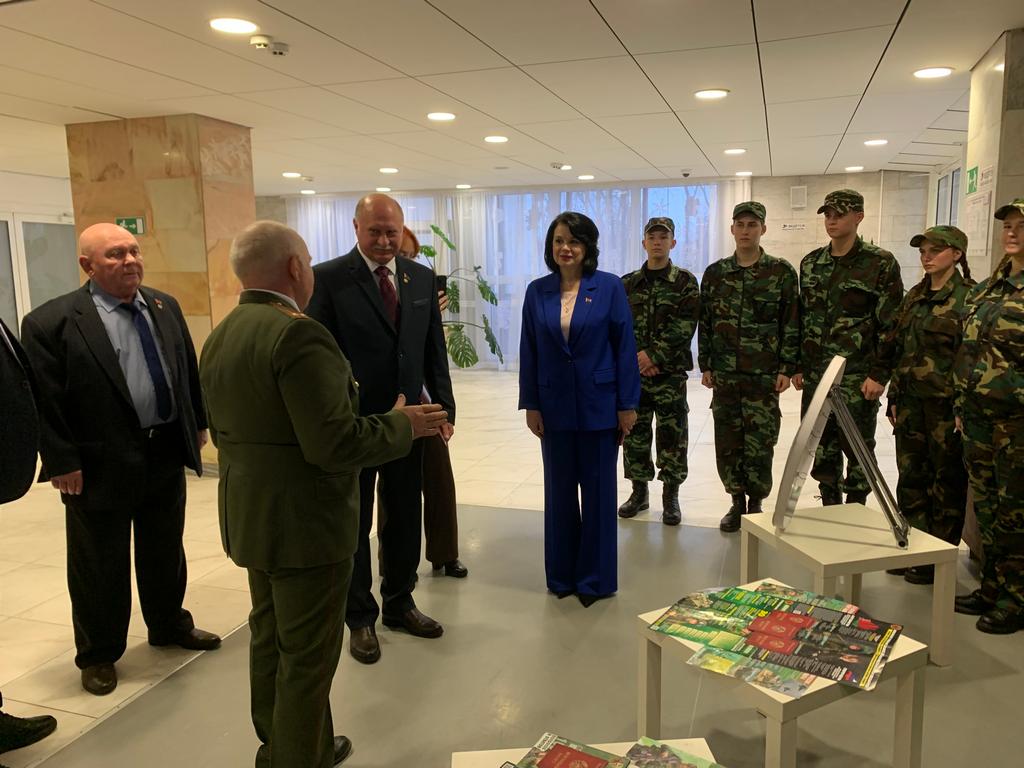 Во время представления заместитель директора по воспитательной работе Гаврилович Е.В. вручила поздравительный адрес и памятный подарок председателю Борисовской структуры ДОССАФ Карташову В.Г..