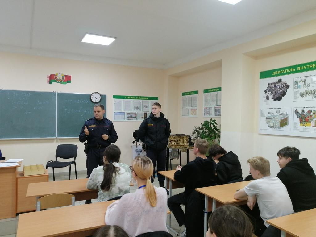 Гостями встречи стали сотрудники ИДН Борисовского РУВД: Наумовец Александр Александрович и Дадалко Роман Игоревич, которые рассказала ребятам о том, как сберечь свое будущее сейчас.