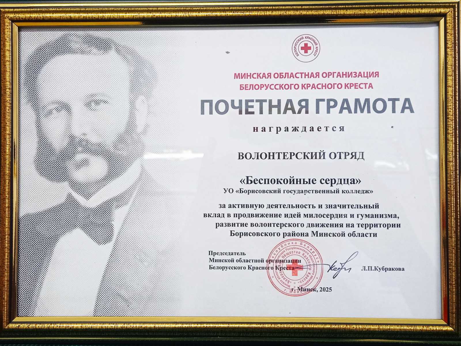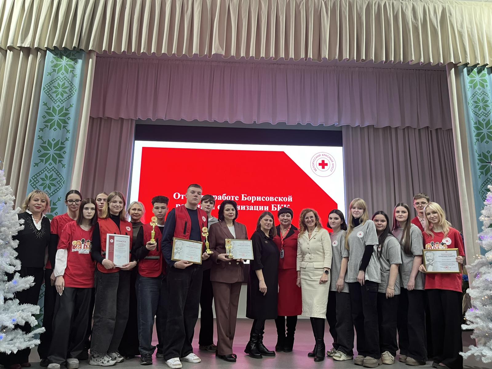 17.12.202517 декабря члены первичной организации БОКК и волонтеры отряда «Беспокойные сердца» УО «Борисовский государственный колледж» приняли участие в отчетно-выборном собрании Борисовской районной организации Белорусского Красного Креста. По итогам работы первички за 2025 год коллектив колледжа и волонтерский отряд «Беспокойные сердца» награждены вымпелами и почетными грамотами Минской областной организации Белорусского красного креста за активную деятельность и значительный вклад в продвижение идей милосердия и гуманизма, поддержку Борисовской районной организации Белорусского Красного Креста.