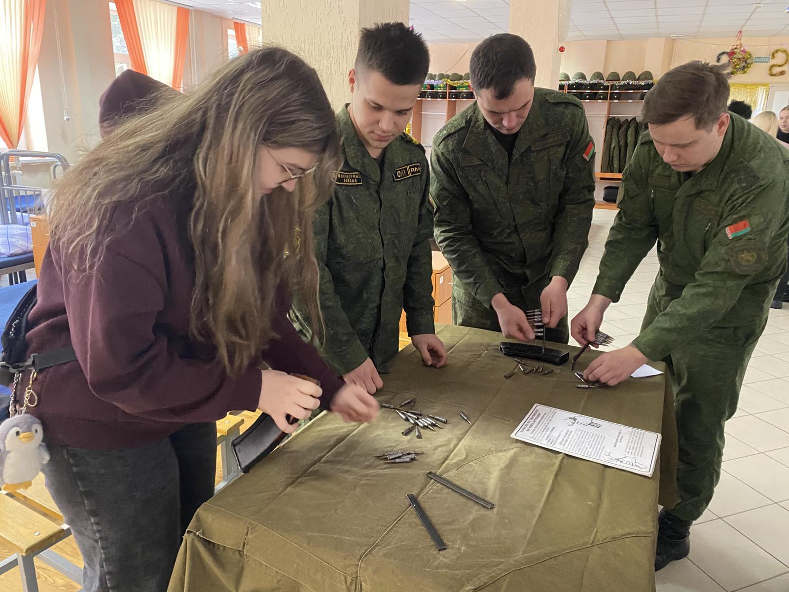 Отдельной частью экскурсии стало посещение воинской части, где учащиеся смогли познакомиться с бытом военнослужащих, побывав в спальном расположении, распорядком их дня и досугом, узнали, что такое учебная тревога. Для ребят были организованы мастер-классы по сборке-разборке автомата Калашникова АК-74, снаряжению магазина автомата патронами, оказанию первой медицинской помощи.