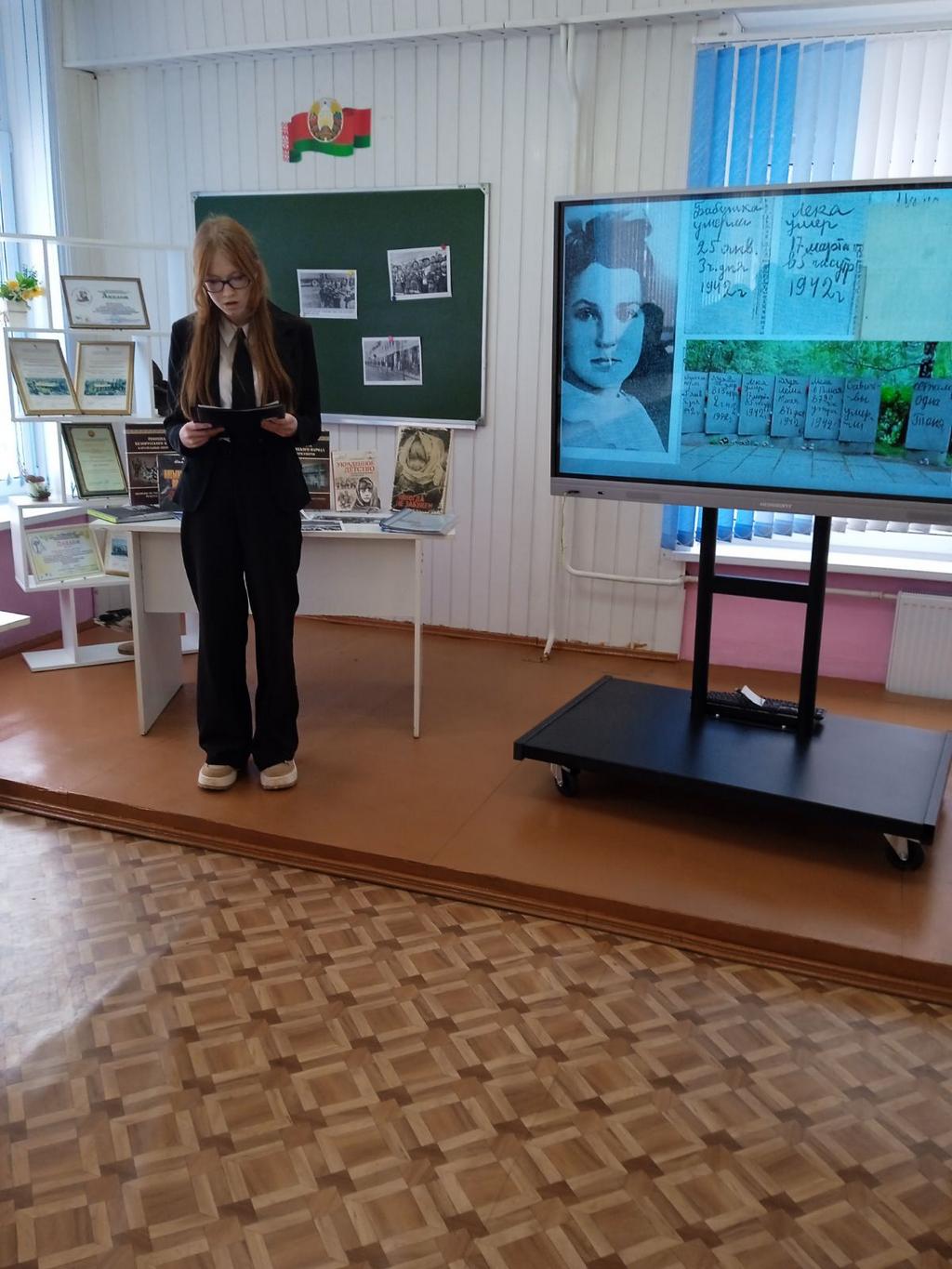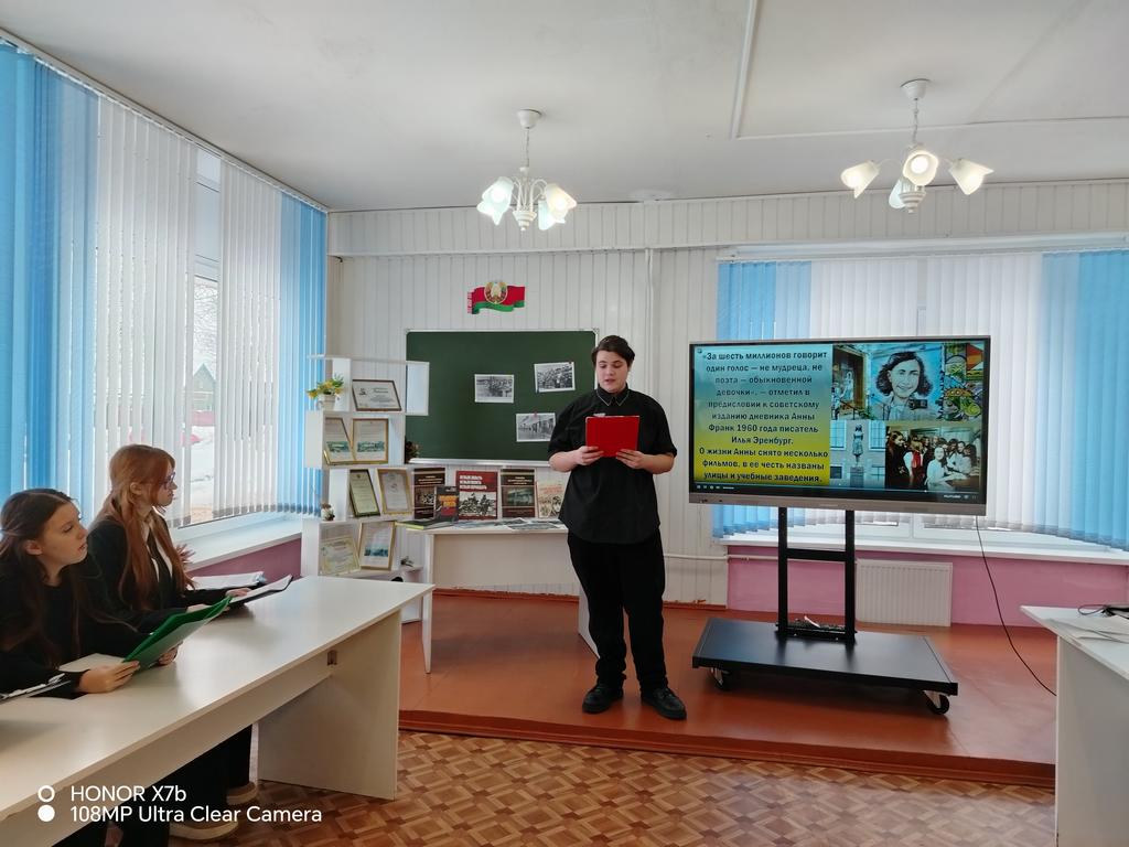 В ходе нашего мероприятия учащиеся зачитали строки дневников Тани Савичевой, девочки блокадного Ленинграда, а также Анны Франкл, записывающей все ужасы, что обрушились на еврейскую семью; воспоминания борисовчанки Эмилии Александровны Копыток, прошедшей ужасы Освенцима, одного из самых масштабных концлагерей; воспоминания белорусского художника, Героя Беларуси, Михаила Андреевича Савицкого, пережившего Бухенвальд и Дахау.