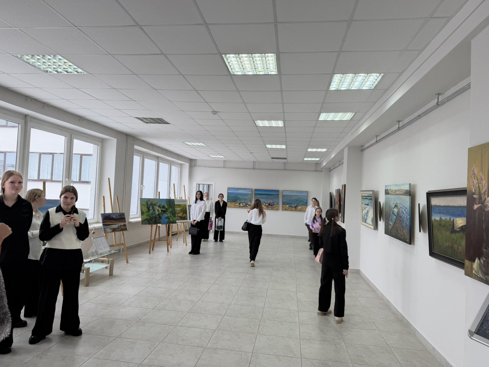 Особое внимание привлекли живописные произведения, среди которых доминировали пейзажи, изображающие красоту белорусской природы, и натюрморты, демонстрирующие тонкое чувство стиля и мастерство художниц. Эти работы, выполненные в различных техниках и стилях, позволили учащимся глубже осмыслить эстетические предпочтения и художественные искания современных белорусских женщин-творцов.