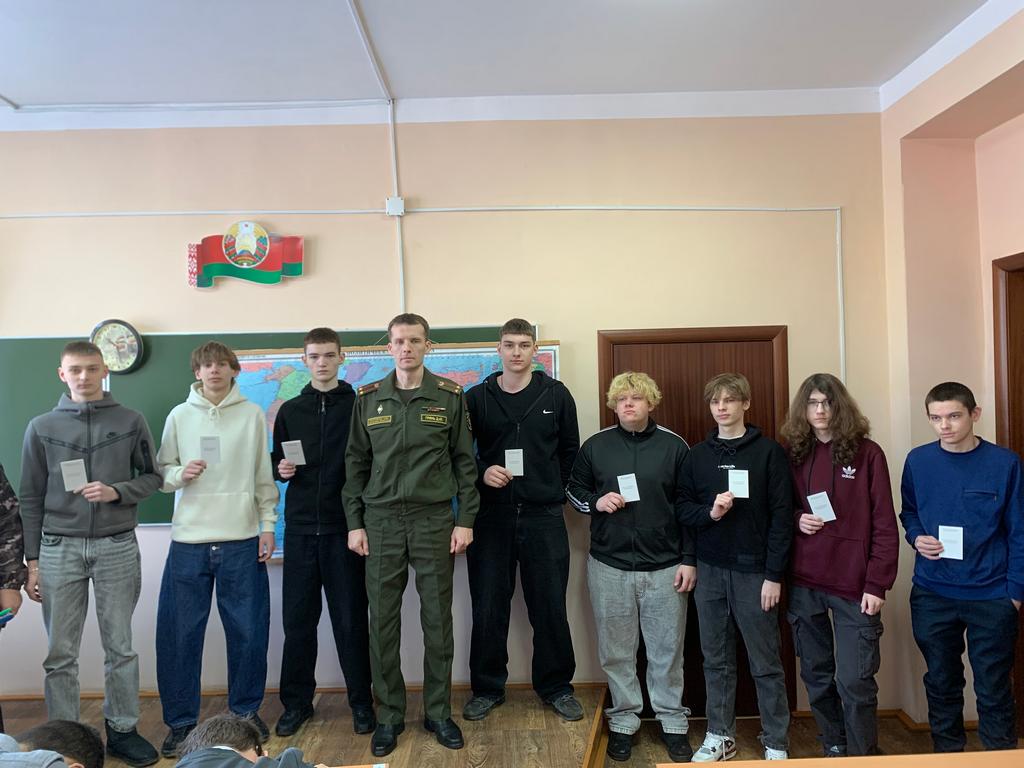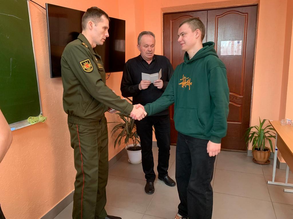 Дмитрий Юрьевич довел информацию о прохождении службы в Вооруженных Силах Республики Беларусь и ответственность за уклонение от службы по призыву. После чего, учащимся подлежащих воинскому учету, вручил удостоверения призывника.