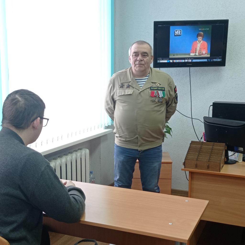 17.02.2026В рамках военно-патриотического воспитания учащимся группы №100а и 204а была организована встреча с ветераном Афганской войны Патоцким Александром Анатольевичем и заместителем командира войсковой части по идеологической работе Гринь Дмитрием Юрьевичем. В своем выступлении Александр Анатольевич рассказал о своей боевой службе в Афганистане и показал небольшой документальны фильм.